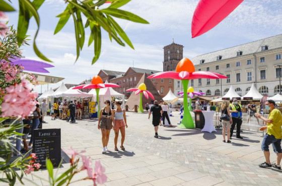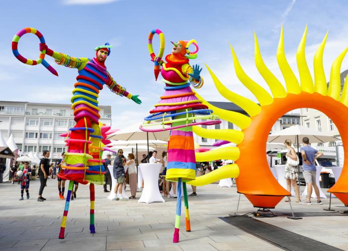 Nach der Corona-bedingten Absage im Vorjahr fand 2021 das Fest der Sinne am 3. und 4. Juli in der Karlsruher Innenstadt statt. Mit einem Genussmarkt, vielfältigem Programm mit Musik und Kleinkunst, einem Flohmarkt und weiteren spannenden Attraktivitäten lockte das Fest unzählige Besucher an, die es sich sichtbar gut gingen ließen. Unsere großen Blumen und das Sonnentor schmückten den Marktplatz am Tag und auch bei Dunkelheit und dienten als beliebtes Fotomotiv für viele Passanten.