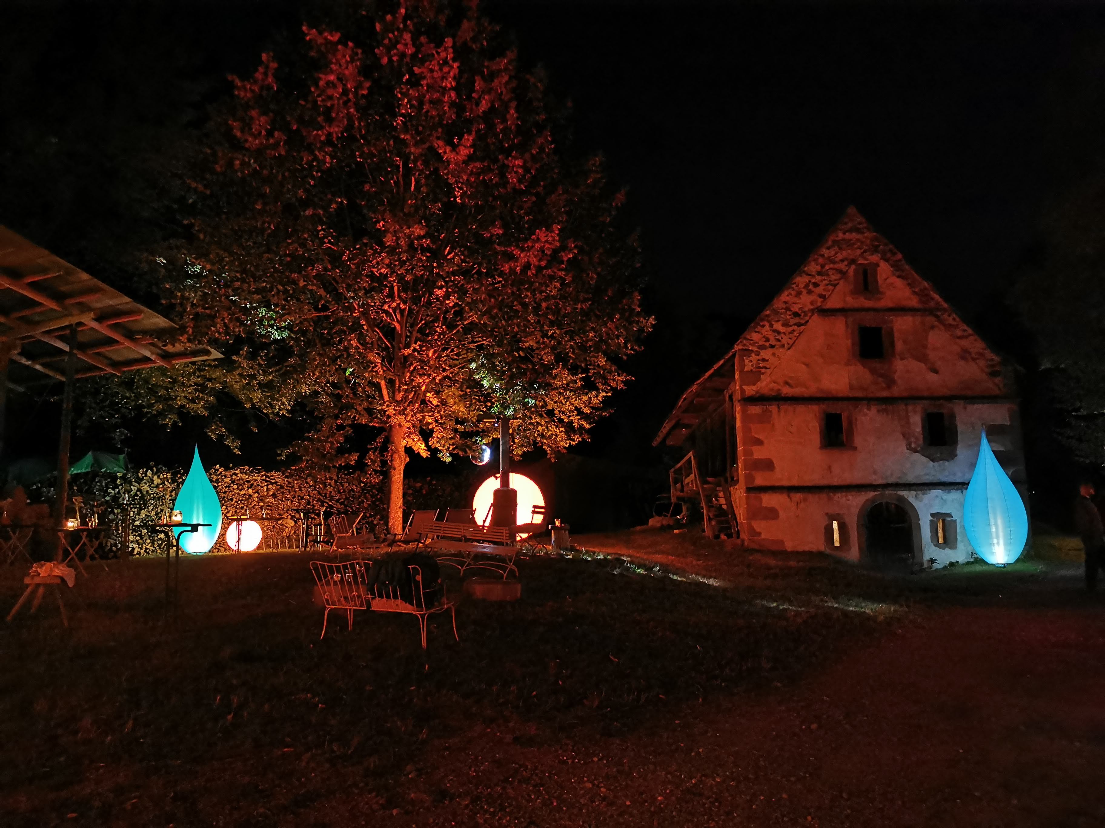 Unsere Lichtobjekte machen auch auf privaten Feiern wie Hochzeiten was her. Florina und Matthias haben sich auf einem Hof im Schwarzwald das Jawort gegeben. Die Illuminationen im Essbereich waren für viele Gäste ein beliebtes Fotomotiv und sorgten bei Nacht für eine fantastische Atmosphäre. Vielen Dank für die Fotos und alles Gute für die Zukunft!