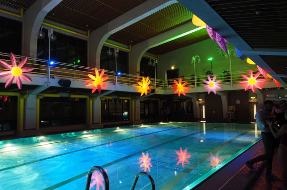 Alle zwei Jahre lässt die Kulturnacht Reutlingen in neuem Licht erstrahlen und überzeugt mit Kunst, Musik und Leckereien. 2019 waren wir mit von der Partie und haben die Pomologie mit einem animiertem Lichttunnel versehen und den Park mit floralen Objekten verzaubert. Das Achalmbad, in dem Synchronschwimmerinnen ihr Können zum Besten gaben, statteten wir in der Halle mit reichlich BLÜMLEIN aus, am Eingang wurden wirkungsvolle PANs positioniert.