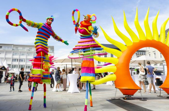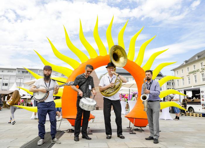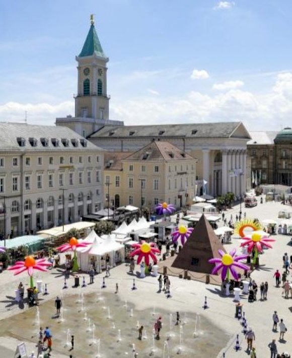 Nach der Corona-bedingten Absage im Vorjahr fand 2021 das Fest der Sinne am 3. und 4. Juli in der Karlsruher Innenstadt statt. Mit einem Genussmarkt, vielfältigem Programm mit Musik und Kleinkunst, einem Flohmarkt und weiteren spannenden Attraktivitäten lockte das Fest unzählige Besucher an, die es sich sichtbar gut gingen ließen. Unsere großen Blumen und das Sonnentor schmückten den Marktplatz am Tag und auch bei Dunkelheit und dienten als beliebtes Fotomotiv für viele Passanten.