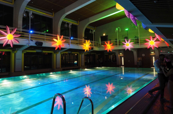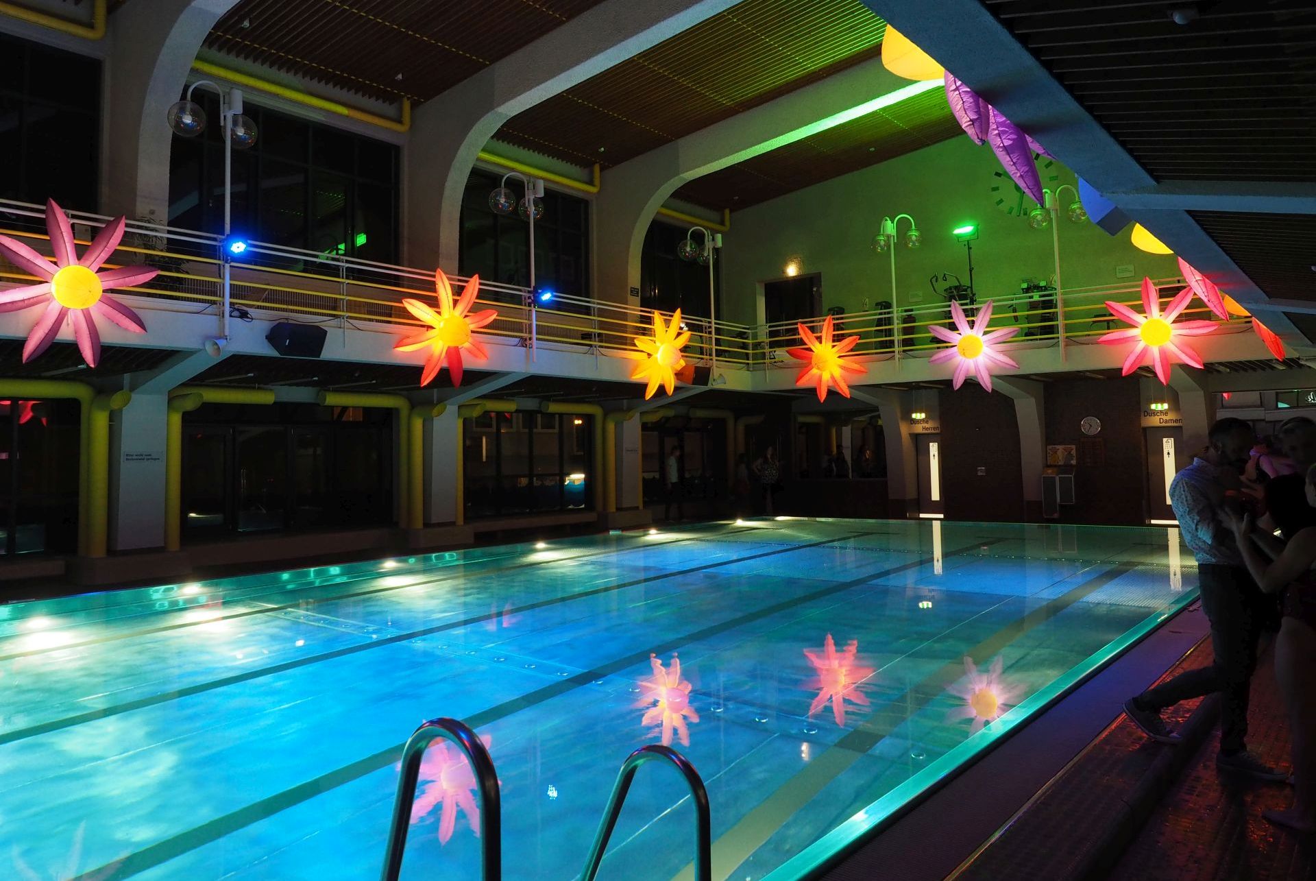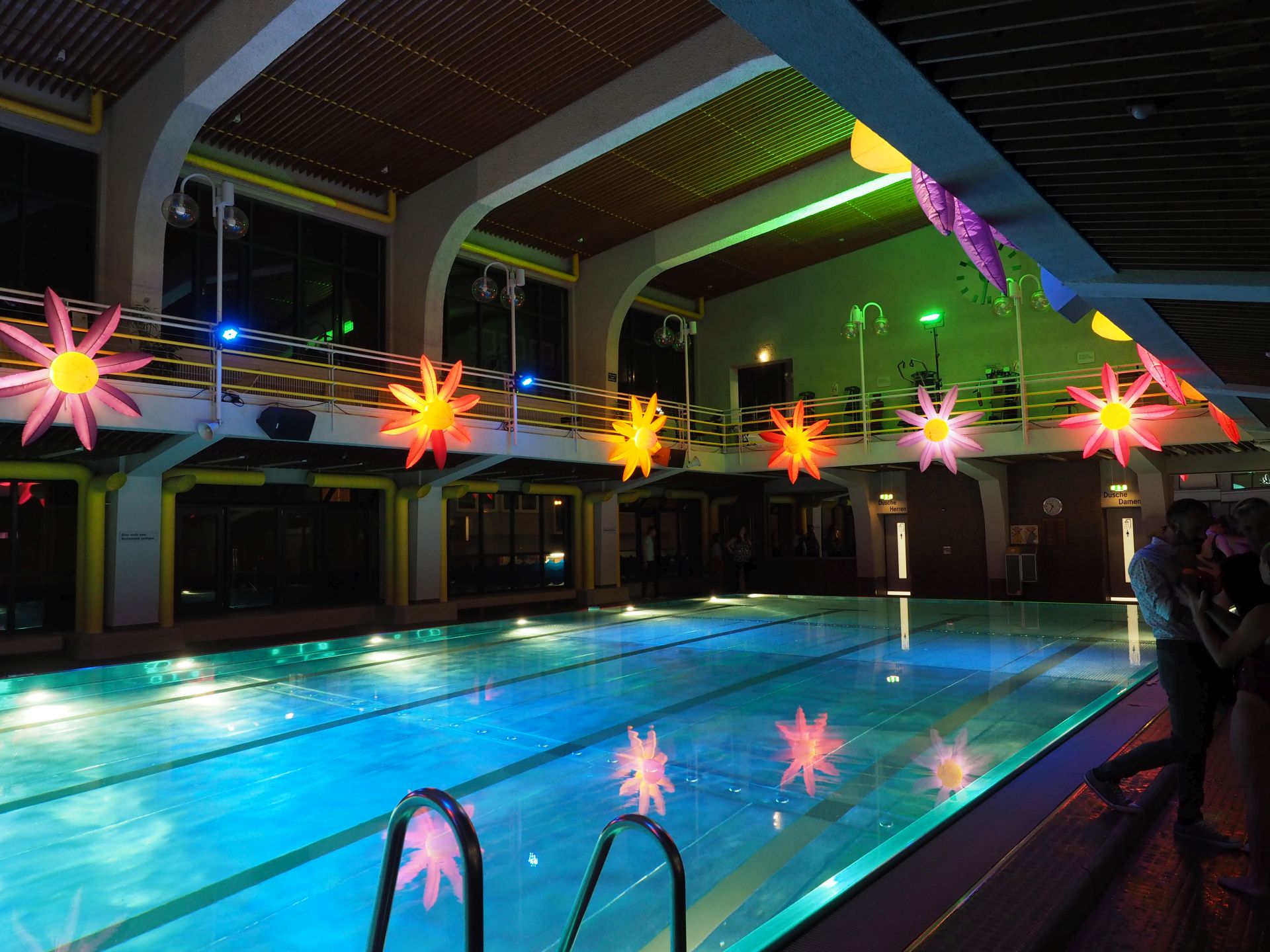 Alle zwei Jahre lässt die Kulturnacht Reutlingen in neuem Licht erstrahlen und überzeugt mit Kunst, Musik und Leckereien. 2019 waren wir mit von der Partie und haben die Pomologie mit einem animiertem Lichttunnel versehen und den Park mit floralen Objekten verzaubert. Das Achalmbad, in dem Synchronschwimmerinnen ihr Können zum Besten gaben, statteten wir in der Halle mit reichlich BLÜMLEIN aus, am Eingang wurden wirkungsvolle PANs positioniert.