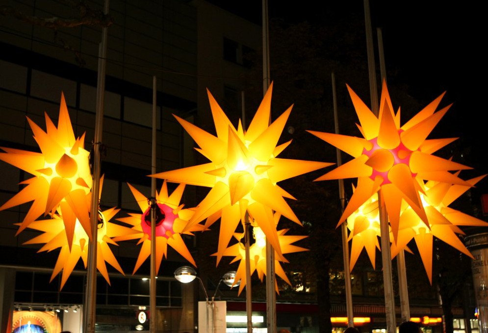 Lichtobjekt STERN ist ein echter Klassiker und wird besonders gern in den Wintermonaten gebucht. Auf dem Boden, an Wänden oder auf Laternen befestigt, erleuchtet das Lichtobjekt die abendlichen Straßen und Innenstädte und ist auf Stadtfesten und Weihnachtsmärkten ein beliebter Hingucker